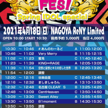 4月18日(日) @ 名古屋ReNY 『DAGAYA FES~Spring IDOL special~』 スイ …