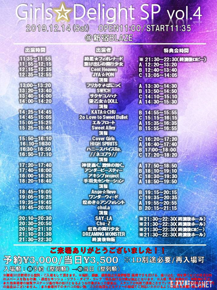 Girls Delight SP vol.4 by 笹木里緒菜生誕実行委員2020、2019年12月15日2020年5月27日 2019/12/14 Girls Delight SP vol.4 新宿BLAZE 「君と僕らのSympathy」